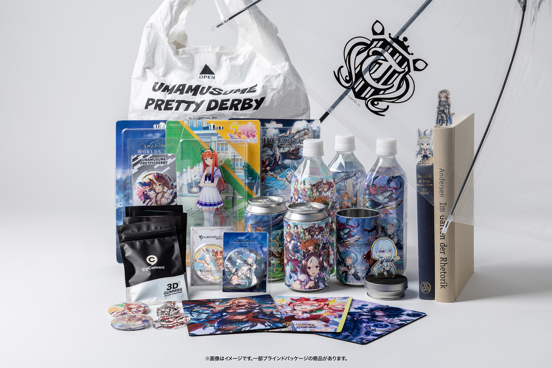 『ウマ娘 プリティーダービー』や『グランブルーファンタジー』などCygamesの各タイトルが、コンビニモチーフのオリジナルグッズとして店頭に並びます。